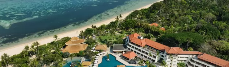 Nestled along a pristine stretch of white sandy beach, Nusa Dua Beach Hotel & Spa, Bali provides a holiday experience you're sure to treasure. With a harmonious blend of traditional Balinese culture and sustainable, dedicated service, every aspect of this beautiful resort is designed for excellence, ensuring the greatest hospitality you could dream of. Conveniently located only 15 minutes from Ngurah Rai International Airport, this 5* masterpiece boasts palatial grounds, with expansive gardens, sugary-white sandy beach, and an array of stunning resort pools to enjoy.