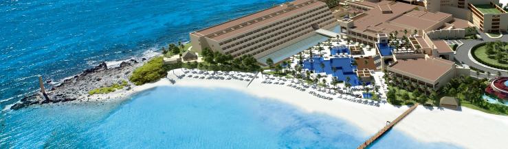 Found on the tip of Punta Cancun, this resort holds the unique distinction of being flanked by the Caribbean Sea on three sides. The resort exudes a village style atmosphere with rooms connected to the beach by bridges and pathways that wind their way through serene gardens. The focal point of the resort is a large lagoon style pool with its very own swim-up bar.