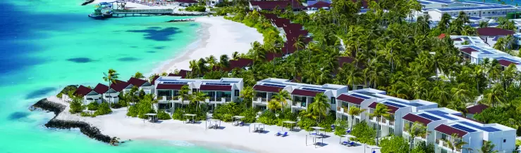 Stretching into the dazzling lagoon are the water villas accessed by a wooden jetty. Each overwater retreat is shaped like a traditional Maldivian Boat – a ‘dhoni’ ... creating a feeling of an intimate, romantic hideaway. Relax on the private deck or step down the stair case to enjoy a refreshing swim in the warm water which laps gently against your villa.